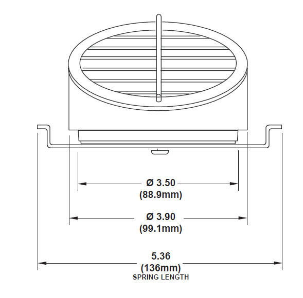 This 3½-inch louver provides controlled airflow through a gently curved outlet that reduces turbulence.
