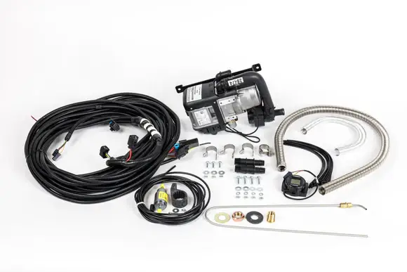 This 12V diesel coolant heater delivers up to 17,000 BTU (5 kW) of heating output. Because it integrates directly into the coolant loop, heat is distributed through the engine block and HVAC system without running the engine.