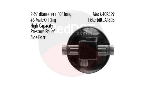 The cylindrical body measures 2-3/4 inches in diameter and 10 inches in overall length. Therefore, it provides increased desiccant volume while maintaining a compact footprint. Since the unit includes a side-mounted pressure relief feature, it adds an extra layer of system protection without increasing installation complexity.