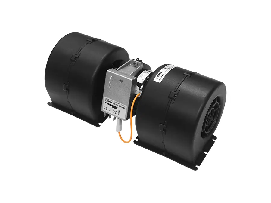 Because the blower features a three-speed motor, operators can adjust airflow output to match comfort needs and operating conditions. As a result, the system maintains steady air delivery during both intermittent and continuous duty cycles. In addition, the compact housing allows the assembly to fit easily into tight HVAC enclosures commonly found in trucks, buses, and off-highway equipment.