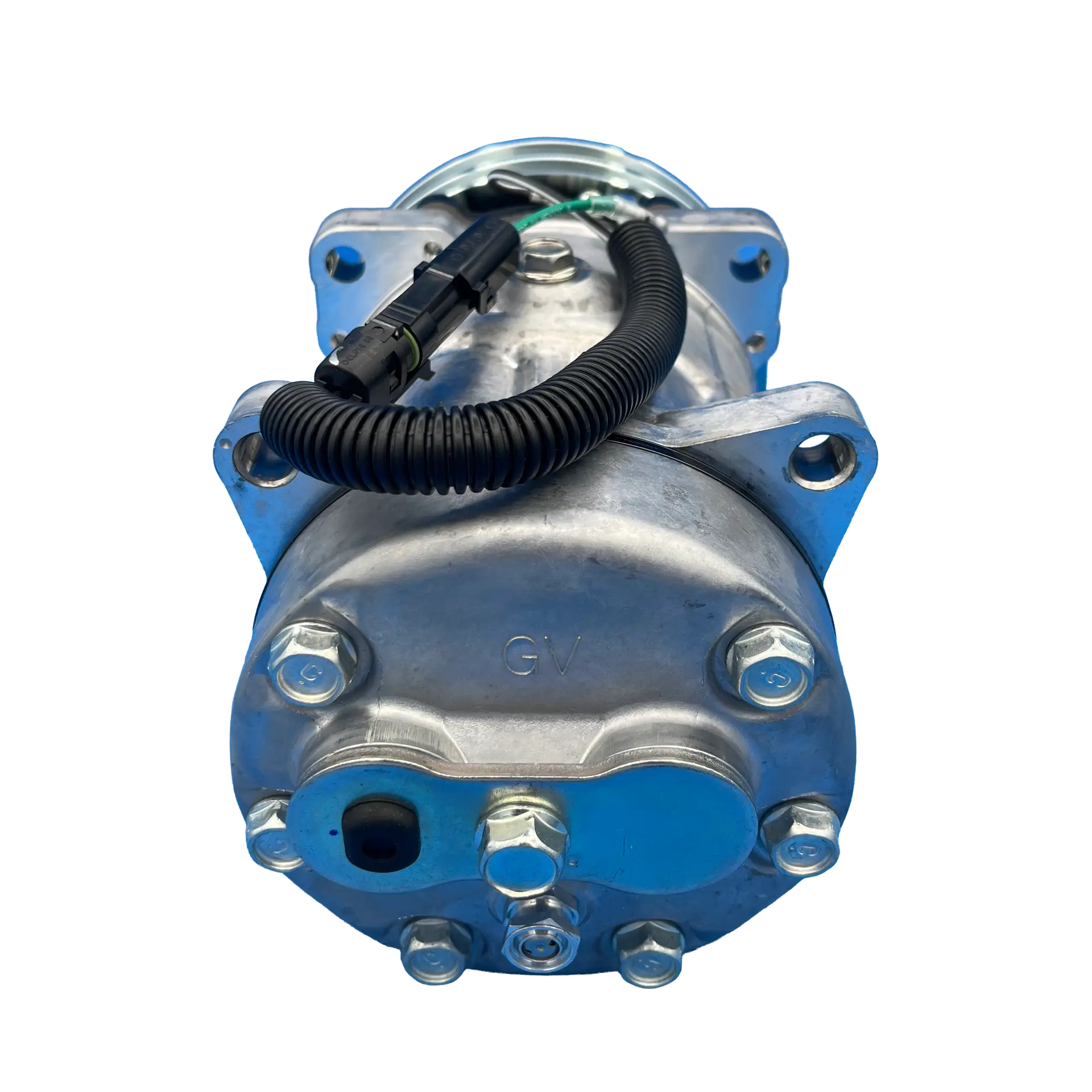 Additionally, this unit uses a GV-style cylinder head with rear universal O-ring FLX-7 pad fittings, which allows for flexible hose routing in multi-fit installations. As a result, it integrates easily into both replacement and retrofit systems. Furthermore, clockwise rotation and a 1-wire Packard electrical interface with integrated diode protection ensure compatibility with standard heavy-duty compressor control circuits using R134a refrigerant.
