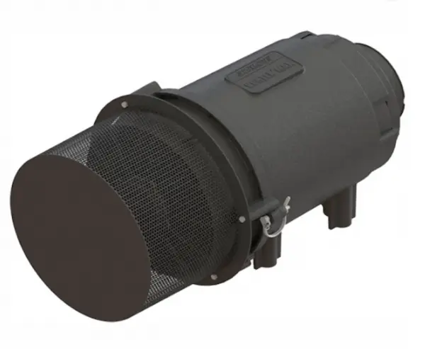 This model runs on 24 volts and supports 300–600 CFM, so it works well on mid-sized and large diesel engines. Because the housing is compact, the precleaner fits machines with limited mounting space. It also installs in a vertical or horizontal position, which makes it flexible for different equipment layouts.